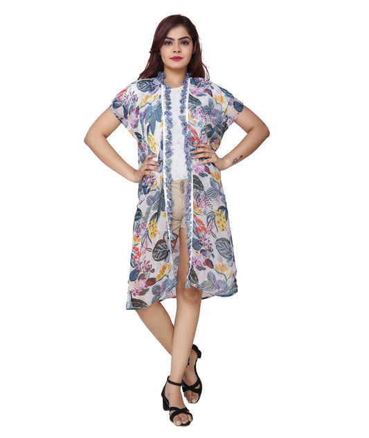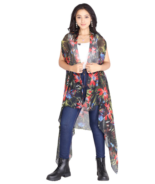 Nature-Inspired Polyester Floral & Leaf Print Shrug | Stylish Coverup for Women | Dazzleup